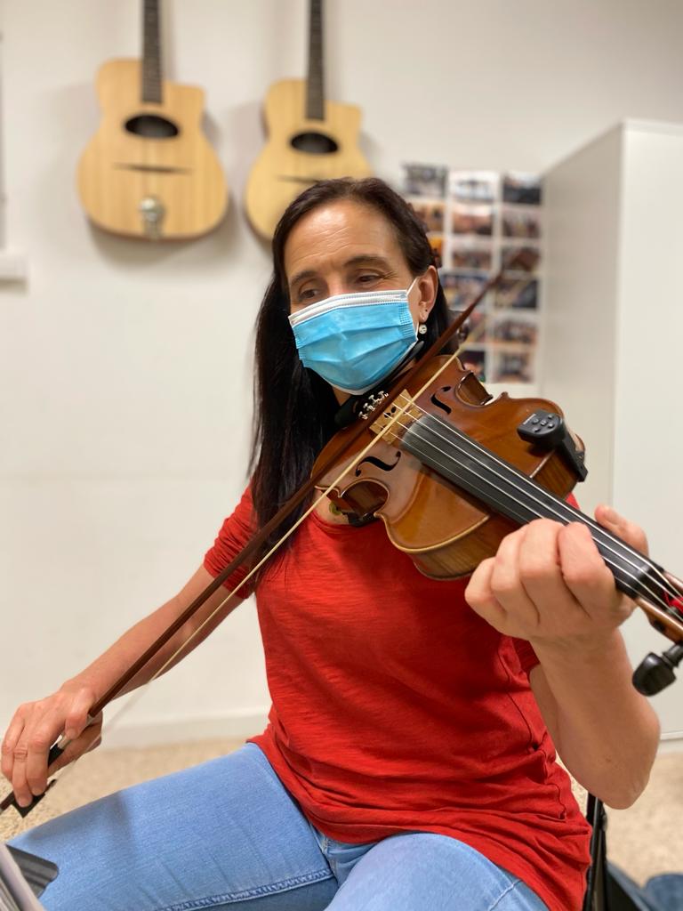Feia anys havia estudiat piano i música classica i trobava a faltar la part social de tocar un instrument. Això ho ha trobat amb el violí. Socialitzar amb el violí, per ella, és poder tocar en diferents estils, clàssica, folk, jazz, poder fer que la gent balli, canti, i poder tocar amb altres músics.