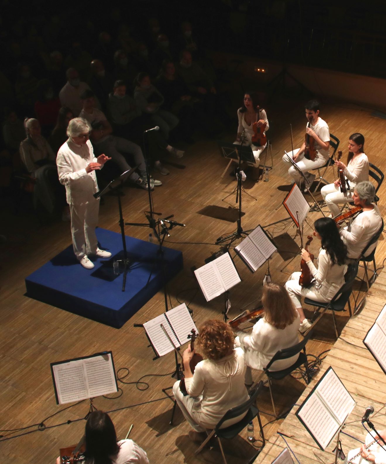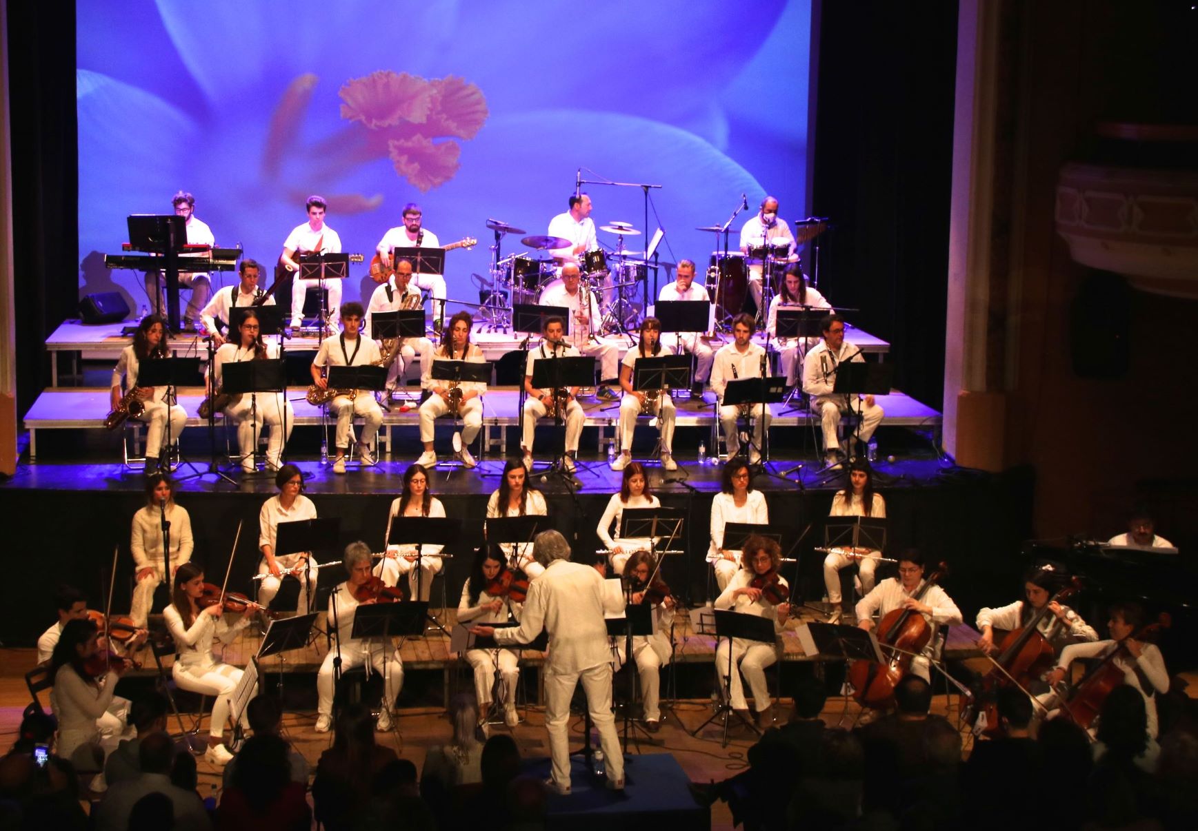 És en J.M. Aparicio que fa tots els arranjaments, i sempre farà espai a qualsevol instrument que es vulgui apuntar, així que potser hi falta algun instrument de la orquestra, però també n’hi ha d’altres que no són en una orquestra clàssica. A Alegria hi havia saxos, una guitarra i un baix elèctrics, un cajón, una bateria. Generalment els falten cordes, així que violinistes, violistes, cellistes, contrabaixos, animeu-vos en properes ocasions!