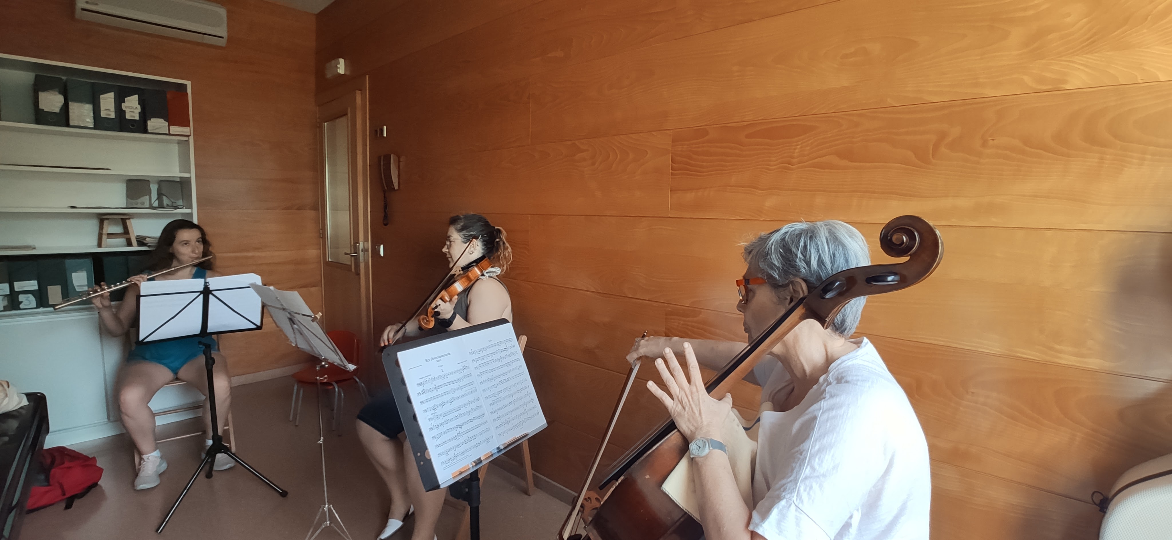 En Jaime, en Guillem i la Nathalie, violins, i la Mireia, violoncelLa M.Àngels, violí i l’Òscar, pianoLa Irene, flauta, l’Alba, violí i la Bet, violoncelEn Manuel, contrabaix i la Montse, violíEn Germán, flauta, i l’Eulàlia, violaEn Carlos, flauta, en Pere, saxo i en Jordi, violoncelEls professors: L’Alba, piano, la Júlia, flauta, en Guillem, violí i viola, i en Carlos, violoncel