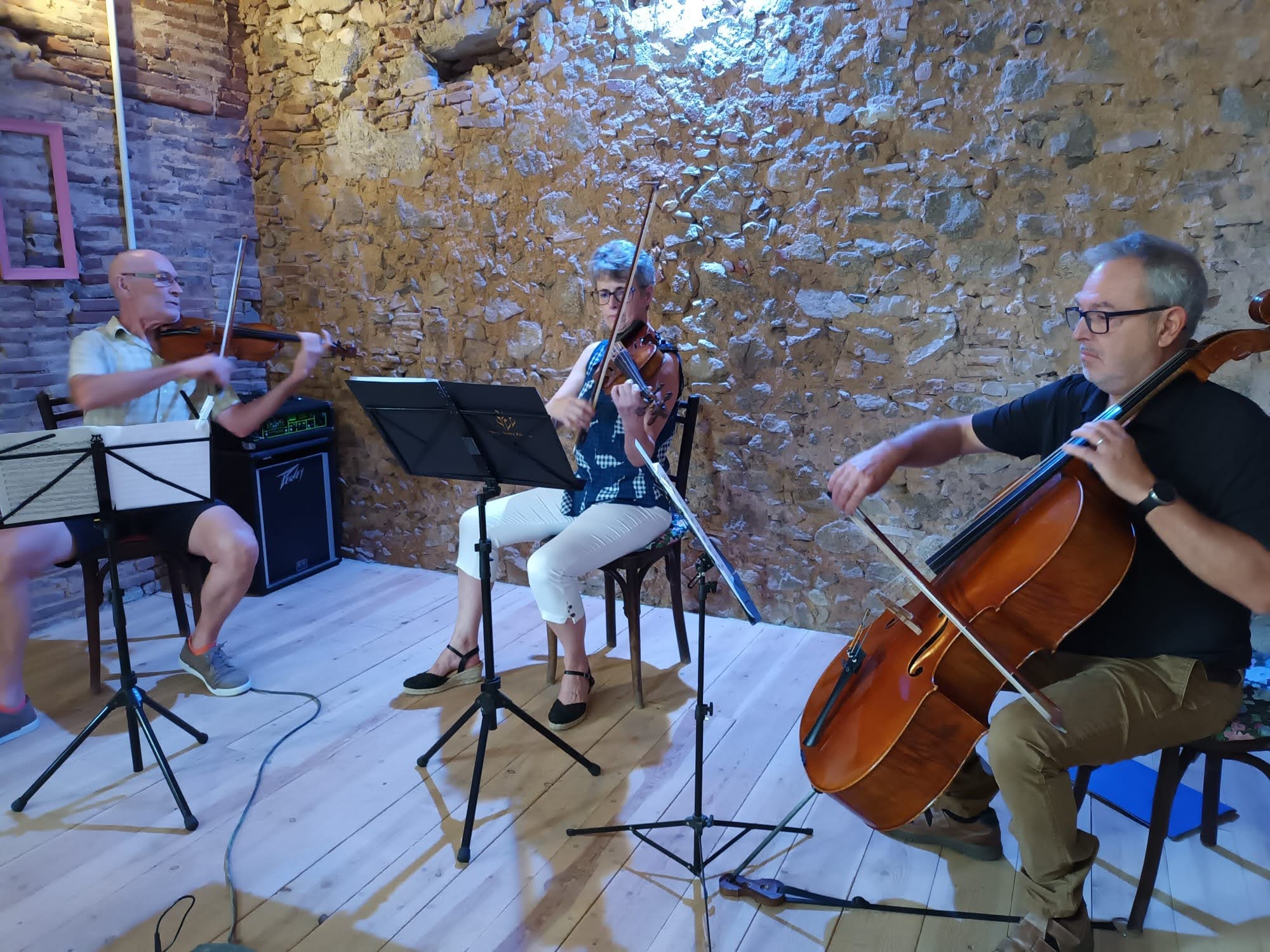 La Eva, l’Edu i en Lluis (viola, violí i violoncel) van obrir la sessió amb un Trio de Schubert en si bemoll i un trio de Weiner en sol menor. Es nota que toquen junts sovint, perquè van haver-hi moments molt exigents, resolts amb energia i decisió.