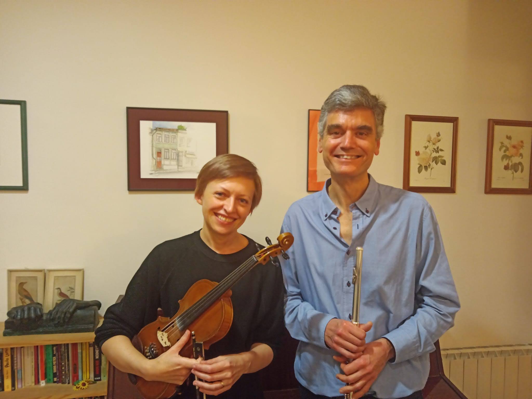 Ens vam conèixer l’any passat a l’orquestra Ricercare a Barcelona. Lamentablement, el projecte no ha continuat i ens vam quedar amb ganes de tocar. Llavors vam descobrir que hi ha obres escrites per a flauta i violí. Volem presentar-vos una d’aquestes obres.